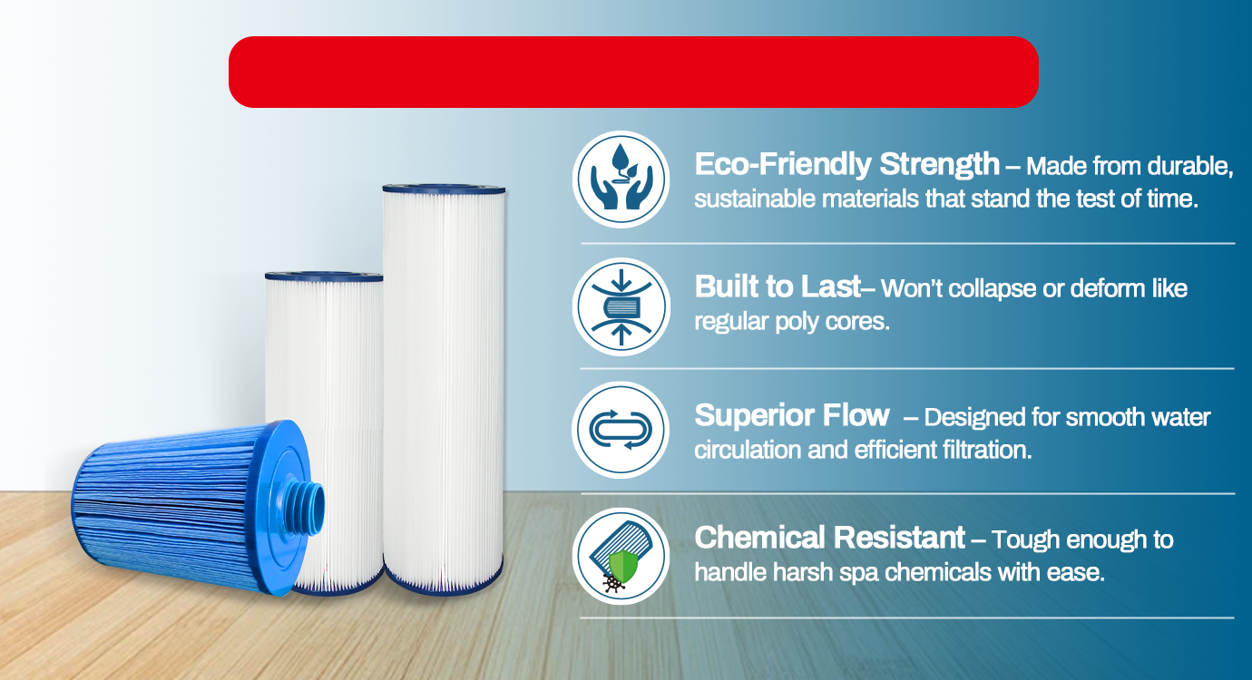 Our Spa Filters are designed for easy changing and installation that makes caring for your spa or swim spa easy. These filters work on a continuous cycle to fight the growth of bacteria, cleaning your spa even when it’s not in use.